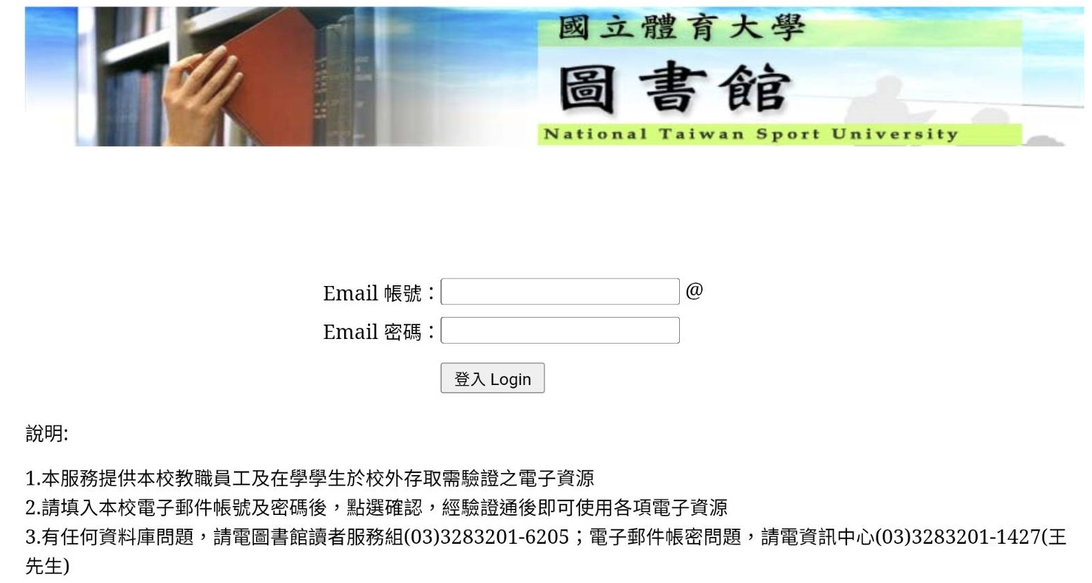 因網路設定調整,目前圖書館電子資源在校外,或在校內使用個人網路連線,皆無法成功使用帳號與密碼登入。