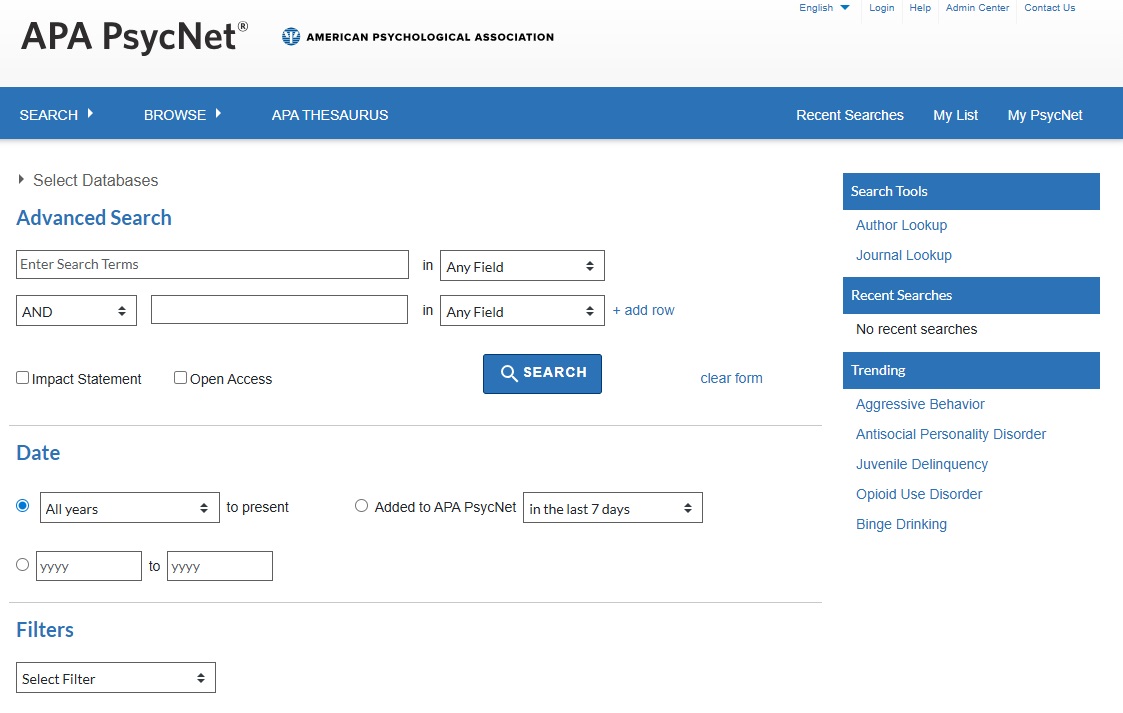 APA PsycArticles資料庫為美國心理學會(American Psychological Association, APA)及其聯盟機構所建置之同儕審查期刊全文資料庫,提供心理學與行為科學領域最具權威性的全文研究內容。本資料庫收錄頂尖心理學期刊,內容涵蓋臨床心理、教育心理、運動心理、諮商、行為科學等多元領域,並提供專業的索引詞分類,可以精準瀏覽相關文章,收錄超過100種以上期刊全文,25篇文獻。