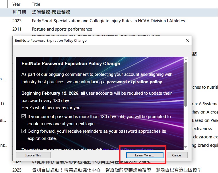【廠商通知】Endnote 2025密碼到期政策變更