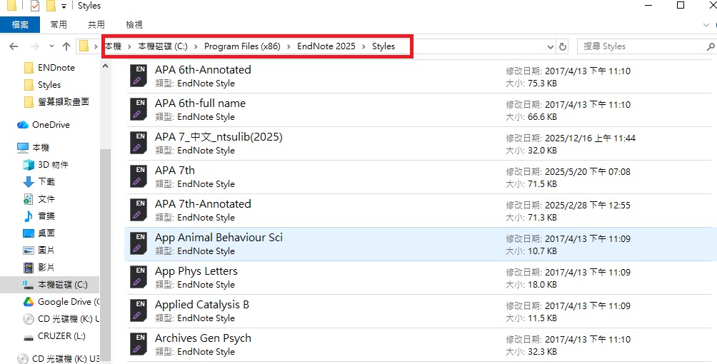 將下載的樣式檔放在資料夾C:\Program Files (x86)\EndNote 2025\Styles |