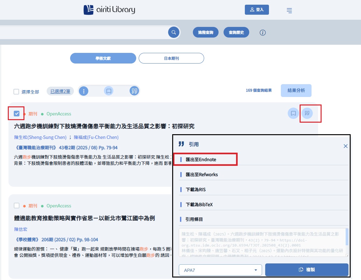 柒、常用資料庫EndNote下載方式參考